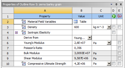 Моделирование изнашивания поверхностей конических жерновов машин для дробления и размола кормов производилось в программе ANSYS и включало в себя несколько ключевых этапов, которые помогли создать точную модель, отражающую физические процессы, происходящие в рассматриваемом зерне ячменя. Вначале была создана детальная 3D-модель размалываемого материала (зерна ячменя). Затем запустили сеточную генерацию для создания качественной расчетной сетки. Хорошо сформированная сетка была необходима для получения точных результатов. Плотность зерна ячменя рассчитывалась на базе экспериментальных данных по формуле где масса m = 0,04 г, а объем 66,6 мм3. Следом задавались физические свойства зерна ячменя, такие как модуль Юнга, плотность, коэффициент Пуассона, взятые из литературных источников [10] (рис. 2).