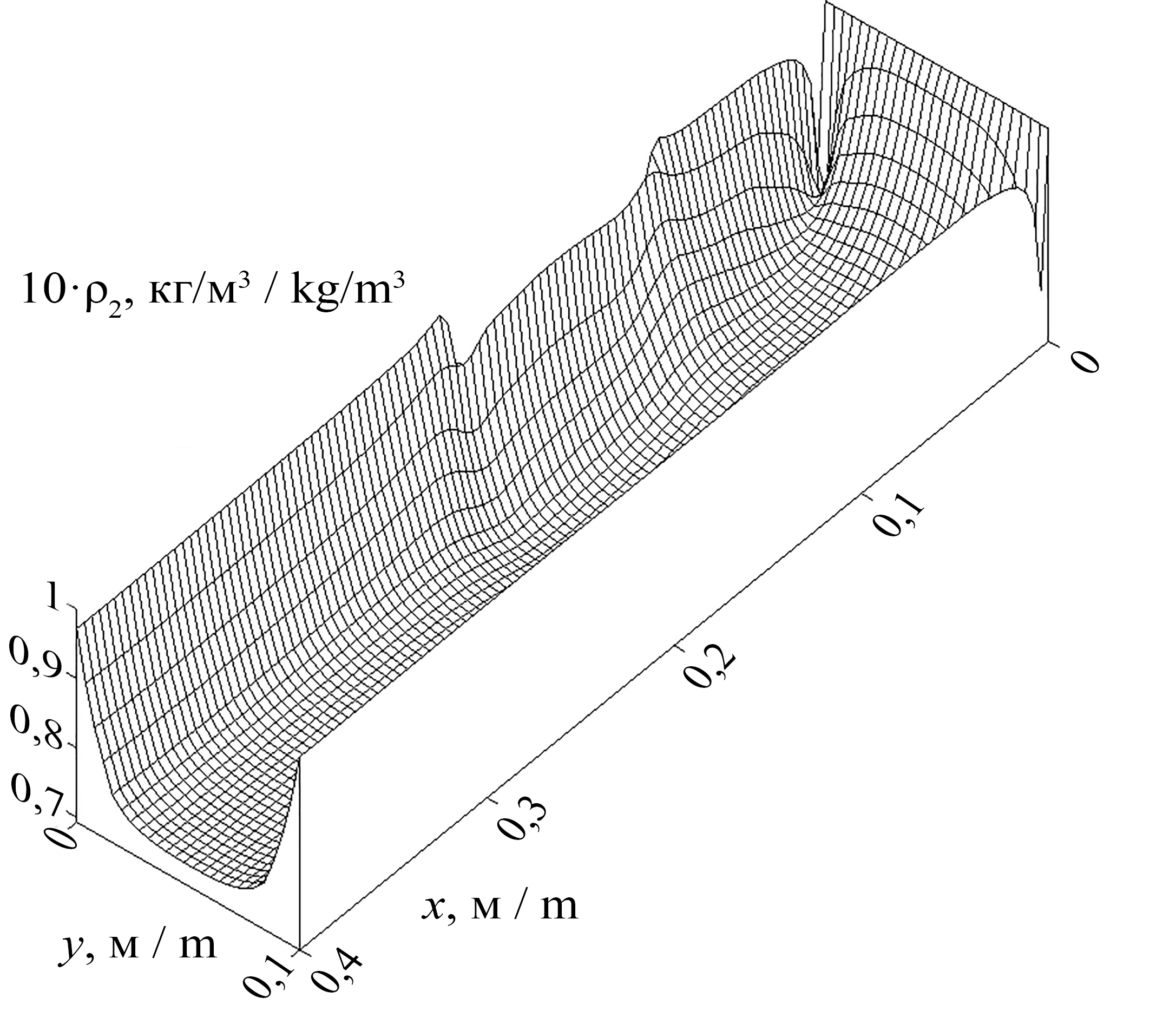 Размеры ячеек вдоль продольной и поперечной координат соответственно Δx = 0,002, Δy = 0,001 м.
