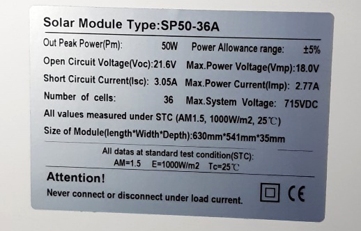 The design was performed on the roof of the location in AL-Marj, Libya. Field activities were carried out under the climatic factors of AL-Marj, which is at approximately 32.45° North latitude and 20.80° East longitudinal coordinates in March 2024. Three PV modules were utilized: two were fitted with continuously extending Dimensions foam fins (5×5×10 mm) for cooling while the third was left naked to evaluate the impact comparatively of cooling. The parameters of each panel were width, 67 centimeters; length, 54 centimeters; maximum output power, 50W. More details concerning specifications for the modules are provided below in the Figure 2.
