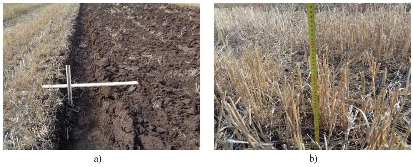 a) depth of plowing; b) height of millet stubble (adapted from [20])