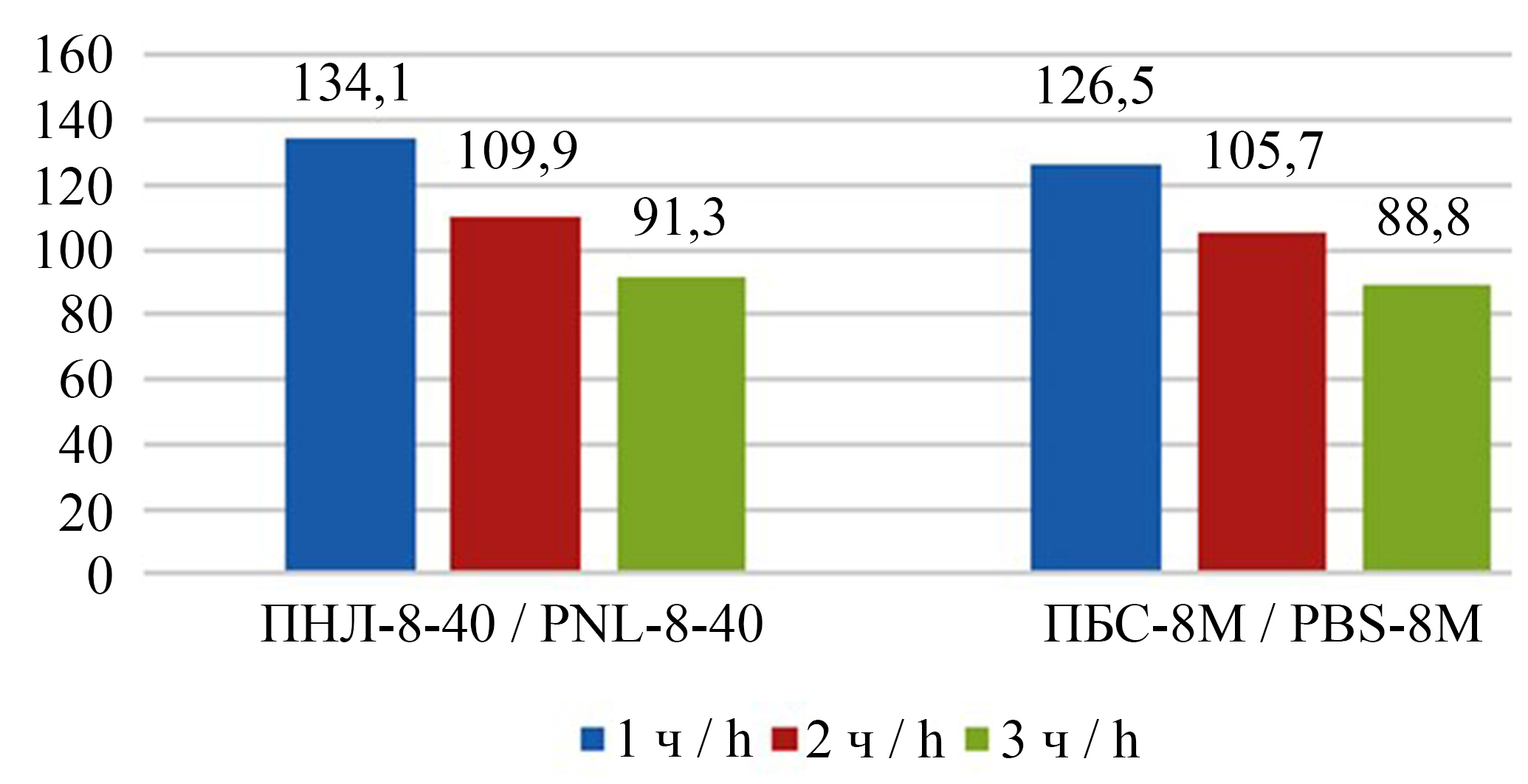 Экспериментально-теоретическими исследованиями эксплуатационных показателей агрегатов с плугами ПНЛ-8-40 и ПБС-8М с трактором тягового класса 5 К-701 установлена производительность за час основного времени разработанного восьмикорпусного плуга ПБС-8М на 30–33 % выше производительности серийного восьмикорпусного плуга ПНЛ-8-40 (рис. 9). На скорости 2,53 м/с К-701+ПНЛ-8-40 погектарный расход топлива составил 17,4 кг/га, ниже на 22 % 701+ПБС-8М – 13,6 кг/га.