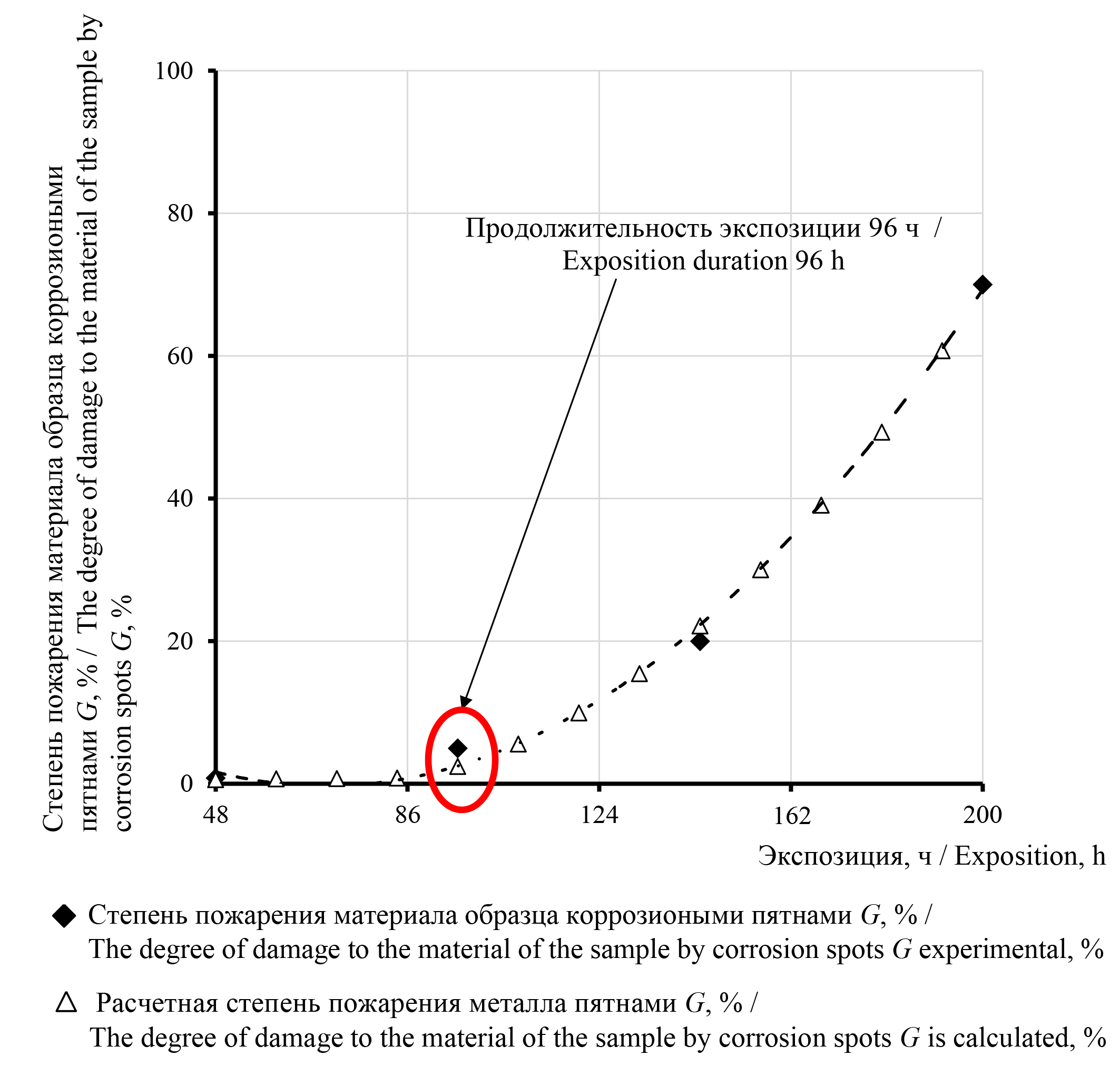 Согласно ГОСТ 9.908-8510 степень поражения поверхности металла коррозией пятнами (G) вычислялась по формуле: