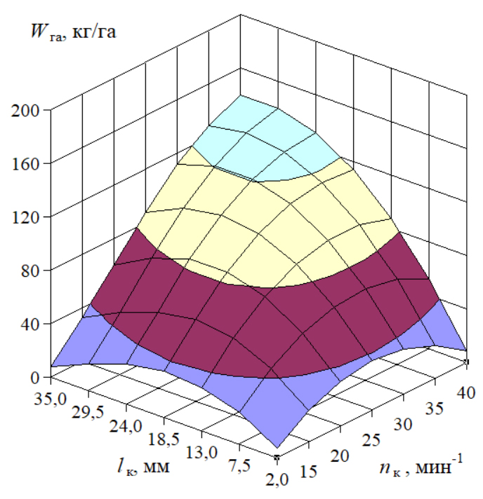 Как было отмечено выше, одной из главных характеристик работы высевающих аппаратов – их производительность. В зависимости от нее определяется норма внесения посевного материала и режимы работы аппаратов. Поэтому исследования, направленные на установление регрессионных уравнений, характеризующих производительность высевающего аппарата в зависимости от кинематических и конструктивных параметров его рабочих элементов, а именно частоты вращения nк (мин–1) и длины вылета lк (мм) катушки, являются актуальными.