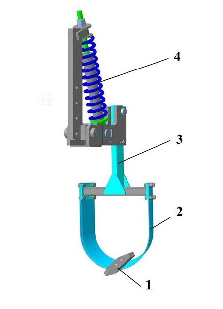 Fig. 1. General view of the bracket-shaped working body: 1 – loosening paw; 2 – bracket; 3 – stand; 4 – safety mechanism