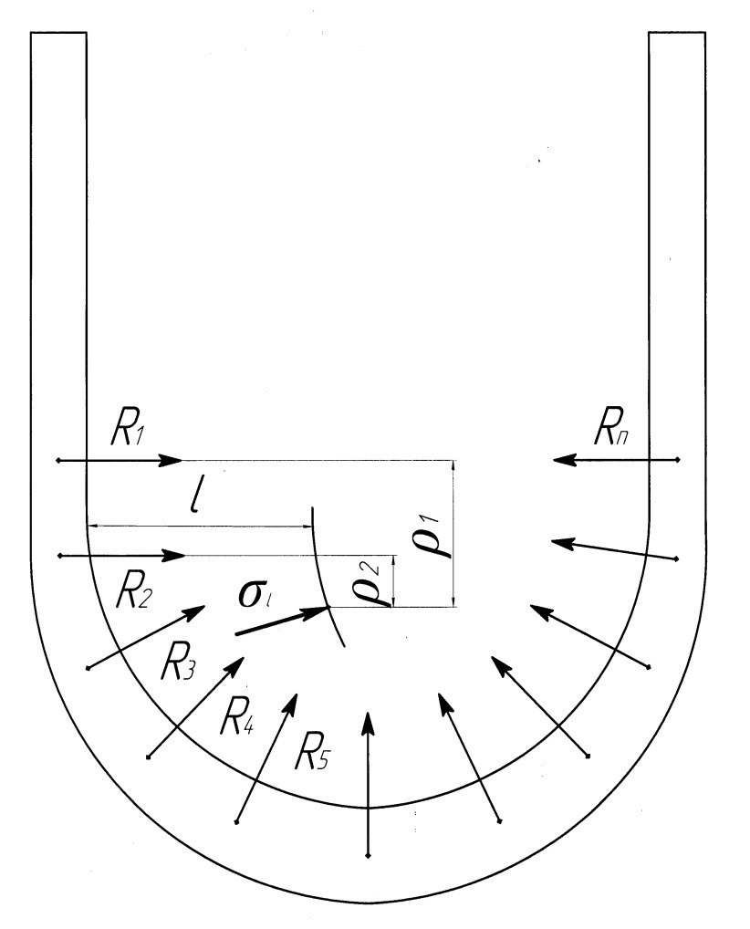 Напряжение в почвенном пласте при действии группы сил по профилю скобы рабочего органа можно представить как сумму напряжений от действия отдельных сил, если их рассматривать как дискретные величины (рис. 2).