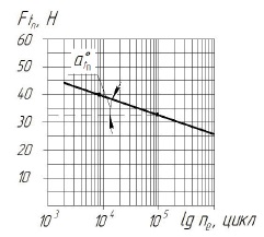Для определения разрушающего напряжения при однократном растяжении (4) σ0 были изготовлены образцы размером 15×15×10 мм. В поверхность испытуемого образца на глубину 0,1 мм вдавливается шариковый наконечник диаметром 2,5 мм до получения остаточного отпечатка диаметром 1 мм9 [17]. При этом фиксируется максимальное значение нагрузки Pmax.