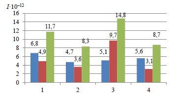 Суммарная интенсивность изнашивания ΣI / Total wear rate ΣI | 8,3 ∙ 10–12 | 3,8 ∙ 10–12 | 10,97 ∙ 10–12 | 0,5421 | 1,9 ∙ 10–12 |