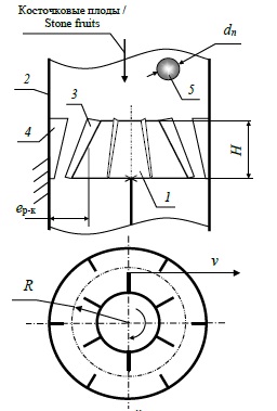 Эффективным направлением решения этой проблемы является усовершенствование и использование в технологической линии переработки косточковых плодов роторной дробилки [3]. Для этого необходимо научно обосновать конструкцию, режимы работы и методы расчета такой дробилки.