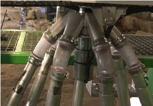 Привод ротационного распределителя осуществляется непрерывно от электродвигателя, который распределяет семена по телескопическим семяпроводам к двухдисковым сошникам (рис. 5).