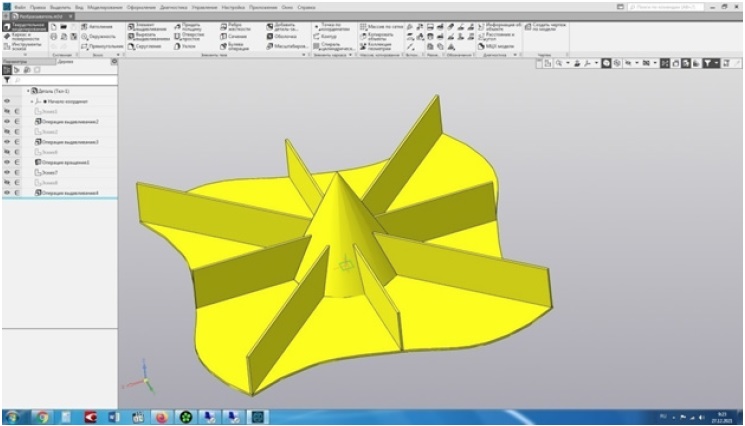 Создание CAD-модели (Сomputer-Aided Design) рабочего органа разбрасывателя удобрений может быть как окончательным, так и промежуточным этапом проектирования. В последнем случае создается CAM-модель (Computer-Aided Manufacturing), которая дает возможность воспроизвести инновационную модель в материале в виде прототипа [22].