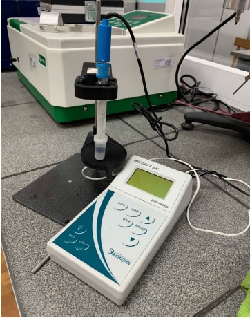 Determination of pH is performed with a pH-meter “Expert pH”, the device is shown in Figure 3, intended to measure pH activity and the mass concentration of OH and H ions in the test samples.