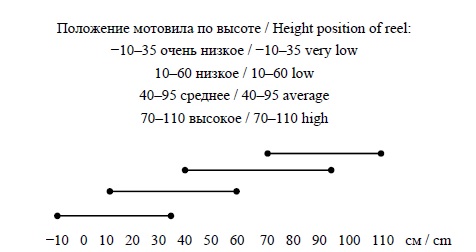 <Положение мотовила по высоте, см {Очень низкое, Низкое, Среднее, Высокое}, −10–110> / < Reel height position, cm {Very low, Low, Medium, High}, −10–110> | МПВ = {ОН, Н, С, В} |