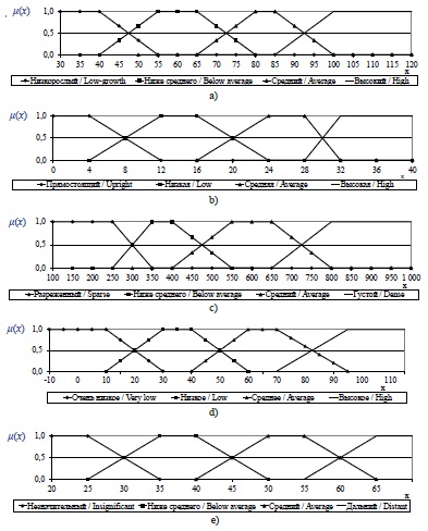 Fig. 4. Graphs of membership functions of the terms of the linguistic variables: