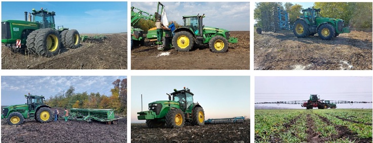 - Подготовка агрегатов, обоснование и контроль давления шин, сопровождение технологических операций дискования стерни, отбора проб почвы, внесения удобрений, дискования после внесения удобрений, посева, прикатывания посева, внесения жидких удобрений, внесения гербицидов и фунгицидов.