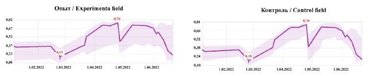 Fig. 9. Dynamics of vegetation index in experimental and control fields