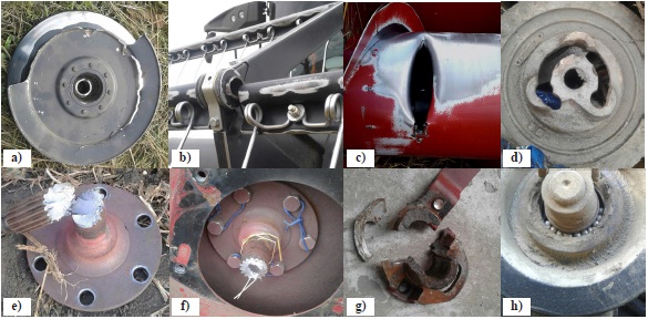 drive pulley; b) fracture tines of the reel; c) the failure of the finger mechanism of the auger of the