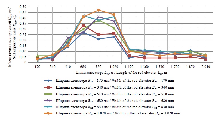 Table 1 Results of research to determine the weight of screened soil impurities Kпр along the rod elevator surface