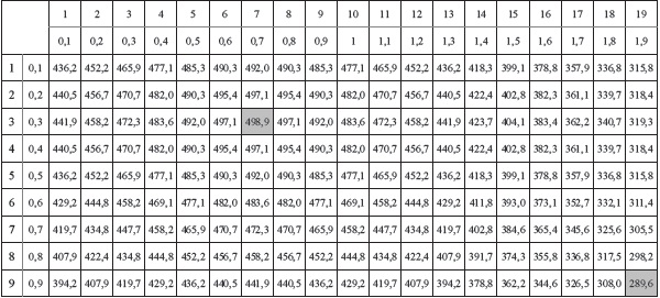 При исходных данных осевая сила света составила I0 = 2 873 кд, максимальная освещенность Emax = 499 лк, минимальная освещенность Emin = 290 лк, средние освещенности Eср1 = 394 лк и Eср2 = 429 лк. Значения коэффициентов, характеризующих неравномерность освещения: z1 = 1,72; z21 = 1,36; z22 = 1,48 отн.ед.
