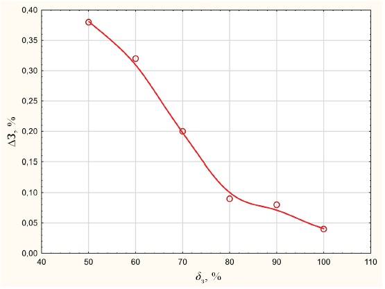 Fig. 4. Graph of the dependence of the relative decrease in ash content ΔЗ on the position