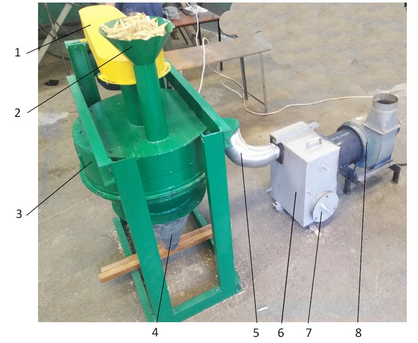 Оригинальная экспериментальная установка (рис. 1) представляет собой пневматическое молотильное устройство [37].