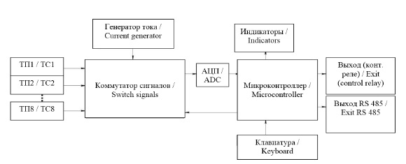 Fig. 1. Generalized functional diagram of the connection of the measuring eight-channel unit Tera