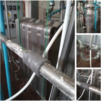 Опыт работы модуля КЭУ в практических условиях цеха по переработке молока Академии биоресурсов и природопользования ФГАОУ ВО «КФУ им. В. И. Вернадского» показал высокую степень зависимости тепловых потерь от материала изготовления и состояния теплоизоляции трубопровода подачи теплоносителя.