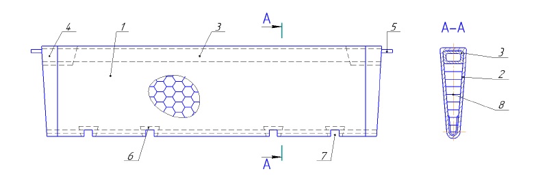 2 – пластина из ПКМ внутренней части борта; 3 – мелкие стеклопластиковые соты;