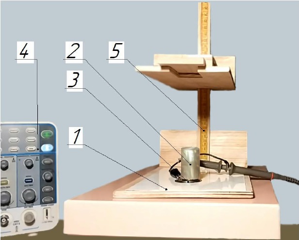 3 – piezo sensor; 4 – oscillograph; 5 – millimeter scale