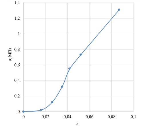 Из графика на рисунке 6 видно, что, начиная со значения ɛ = 0,042, модуль Юнга не изменяется, а состояние полисиликона SP является линейно-упругим.