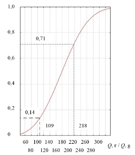 В таблице 3 представлены параметры закона распределения Вейбулла – Гнеденко. Математическое ожидание трехпараметрической функции μ определялось с использованием модуля «вероятностный калькулятор» в программе Statistica.