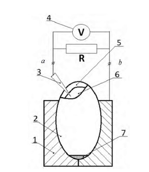 Для проведения измерений был модифицирован электрод-держатель. В предыдущих исследованиях применялся электрод-держатель, выполненный в виде «крокодила» с острыми зубцами [2]. Зубчатый электрод был заменен на гладкий, который обеспечивает плотный контакт с оболочкой зерна. Система для измерения мембранного потенциала у зерен пшеницы представлена на рисунке 1.