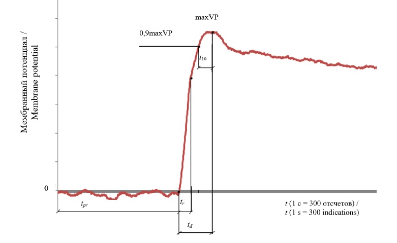 10-процентное время нарастания ВП представляет собой процесс завершения деполяризации оболочки зерна. Очевидно, что нелинейное изменение ВП на временном интервале t10 определяется скоростью изменения проницаемости оболочки зерна.