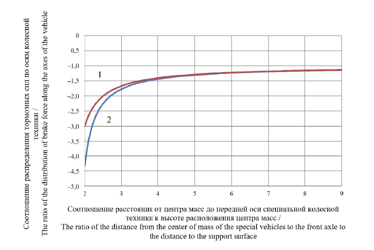 Fig. 4. The required ratio of braking forces along the vehicle wheel axes, ensuring