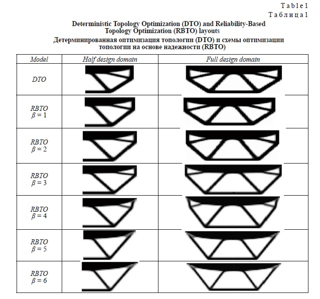 надежности топология оптимизация (RBTO) конфигурация при рассмотрении β = [1‒3] :