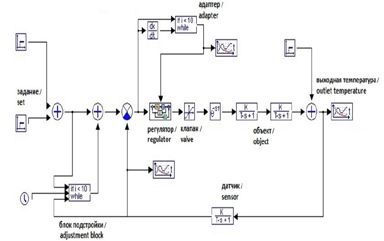 – разработка алгоритма адаптации регулятора для структуры системы управления с учетом реальных элементов и запаздывания в передаче теплоносителя;