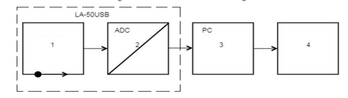 Узлы измерительного устройства и аналого-цифрового преобразования формируют напряжение для передачи его в ПК с последующей обработкой фиксируемого сигнала. Узел подсистемы обработки информации включает в себя модели и алгоритмы, на основе которых происходит анализ полученной в результате измерений информации.