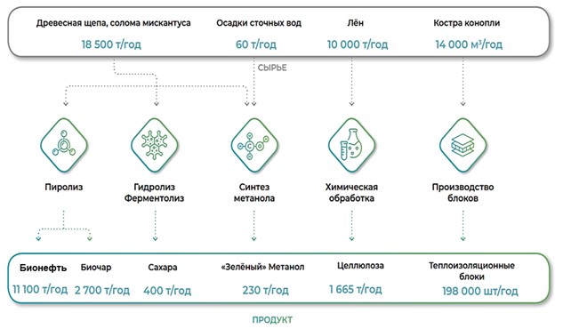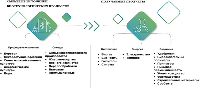 Рис. 1. Схема потребляемых биоресурсов и получаемых продуктов