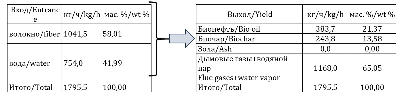 Рис. 3. Сводный материальный баланс производства бионефти и биочара