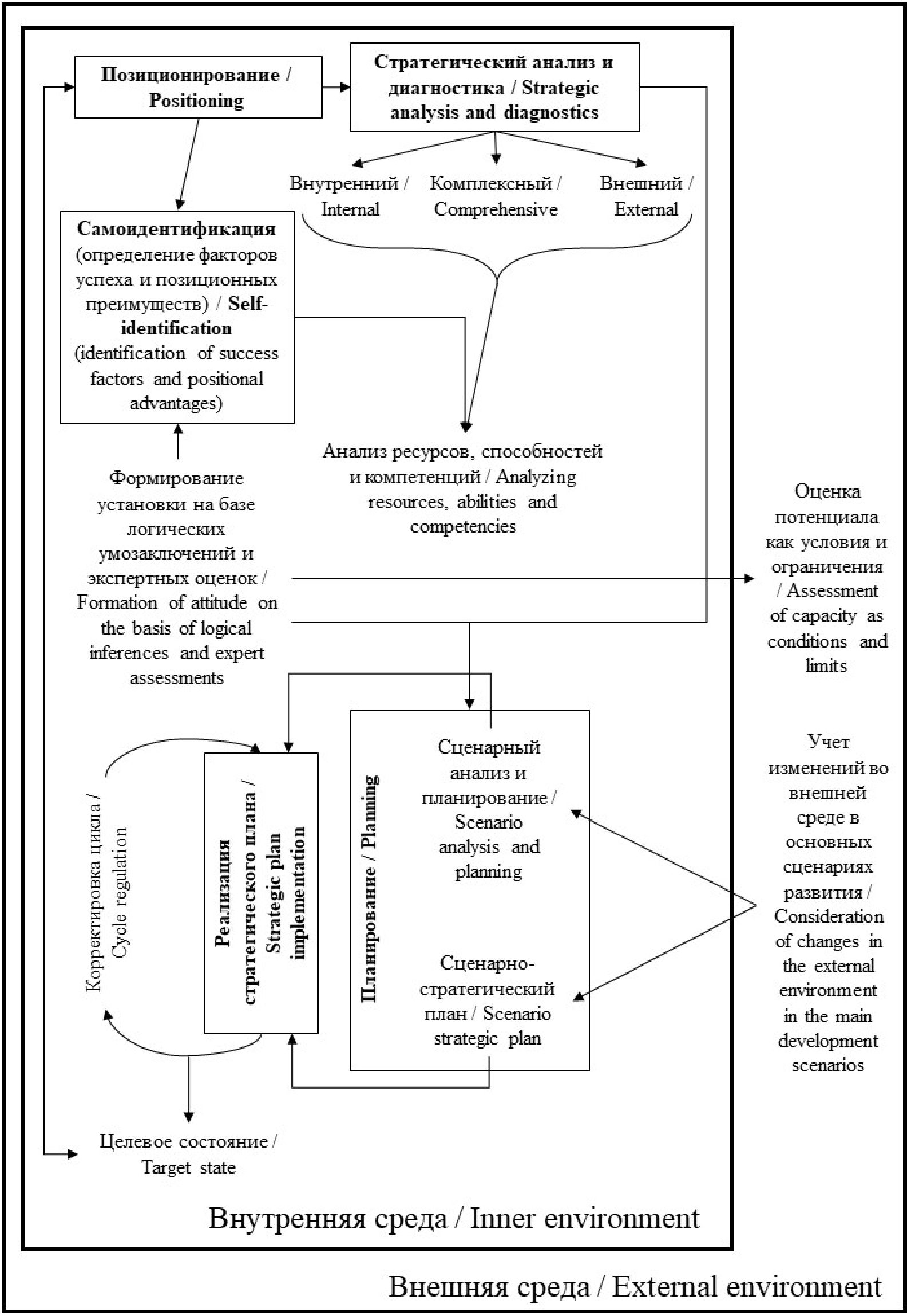 Таким образом, замкнутый цикл стратегического управления состоит из следующих этапов: позиционирование; стратегический анализ и диагностика; самоидентификация; планирование; реализация.