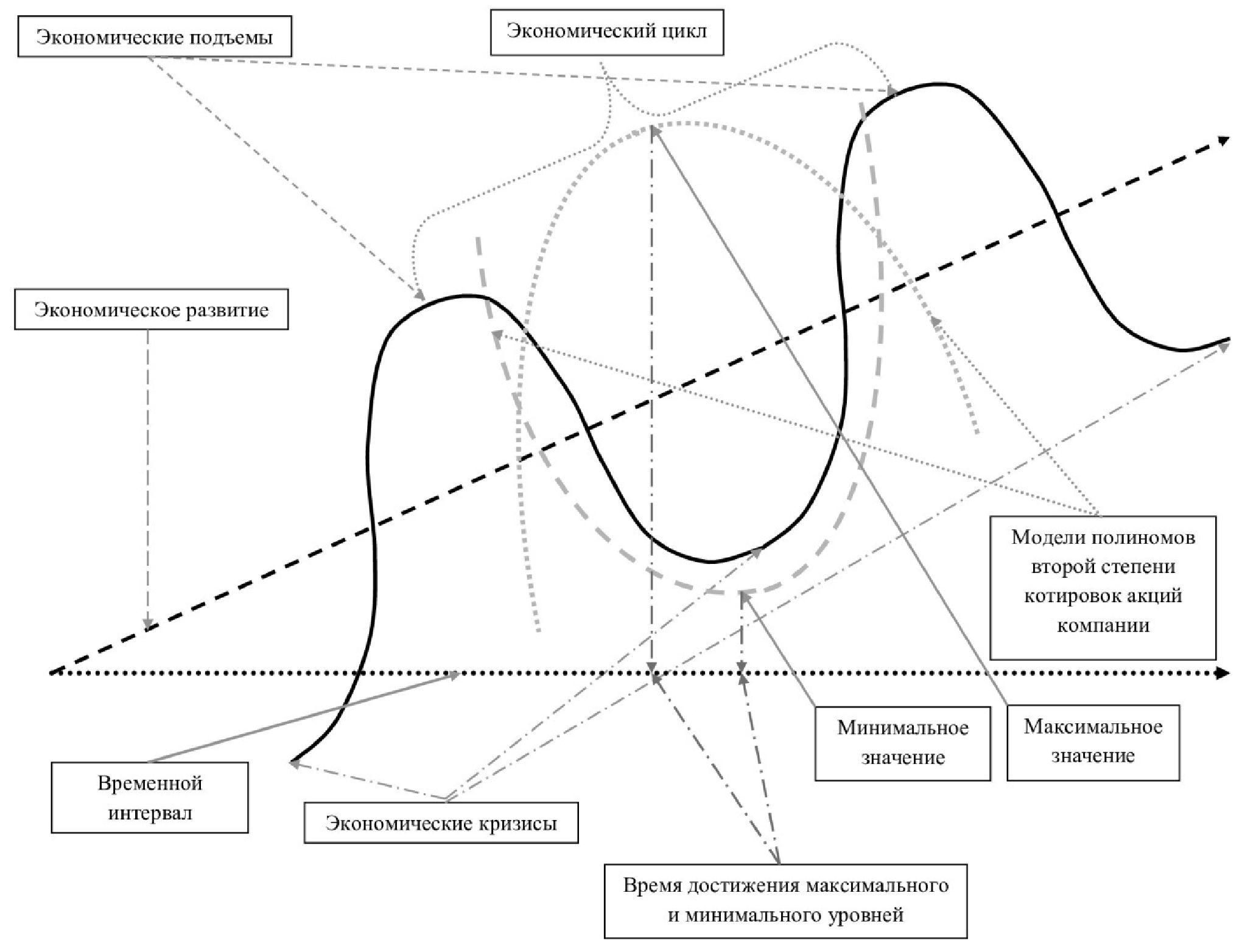 Рис. 1. Схематическая основа построения полиномиальных моделей тенденции котировок акций компании в пределах экономического цикла