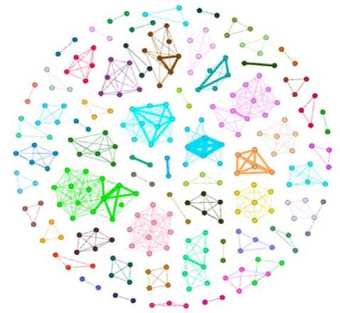 Высокое значение модулярности (0,946 − при максимальном значении 1) − показатель того, что разделение сети на кластеры ярко выражено.
