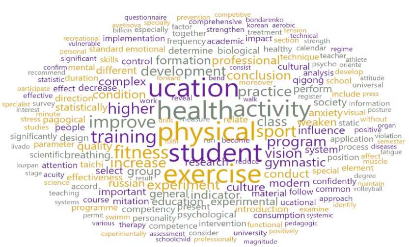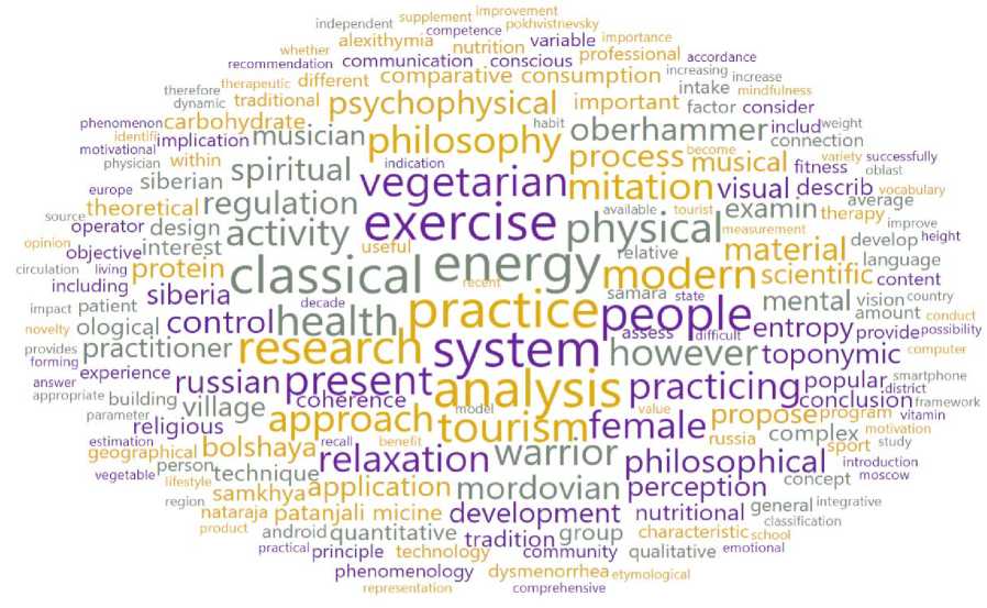 Fig. 22. Cloud of words of the cluster “Yoga effect on the circulatory and nervous systems of the human body”
