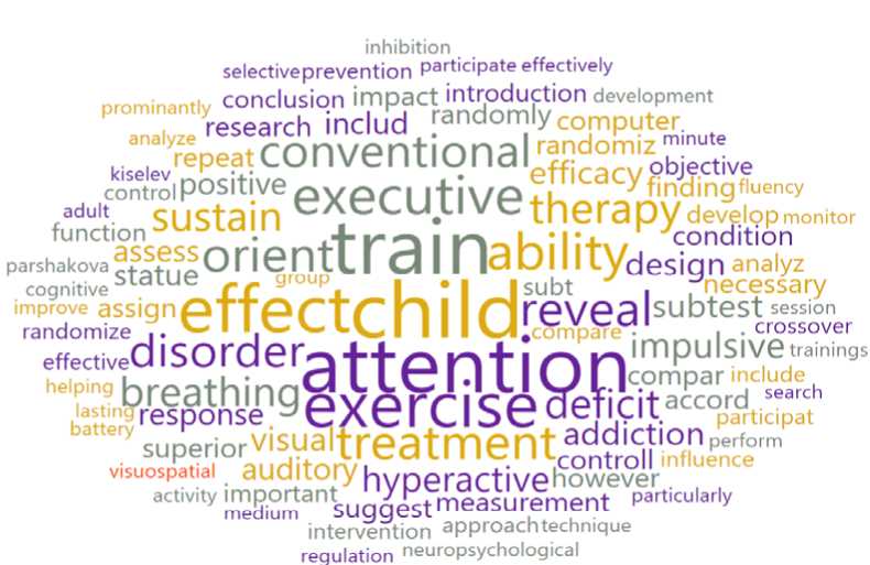 Fig. 16. Word cloud for the cluster “Yoga positive impact on children with attention deficit hyperactivity disorder”