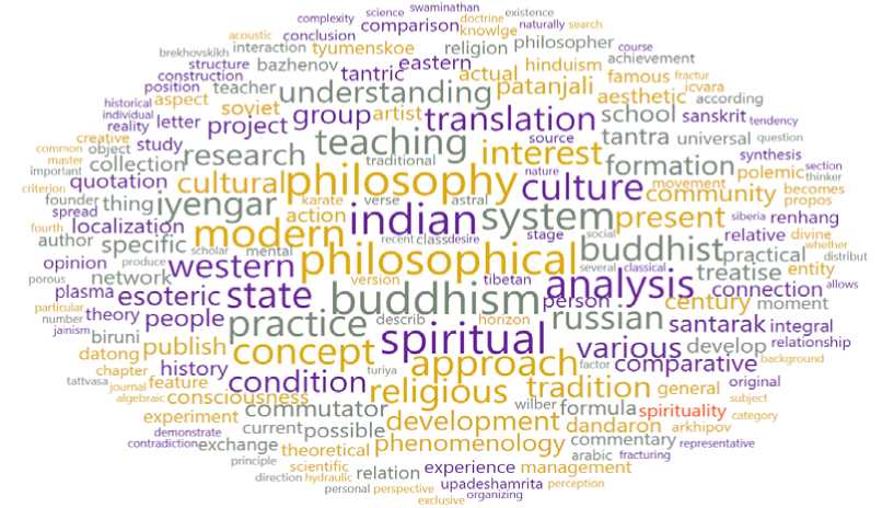 Рис. 20. Облако слов кластера «Культура и философия йоги» (без включения слова yoga в анализ)