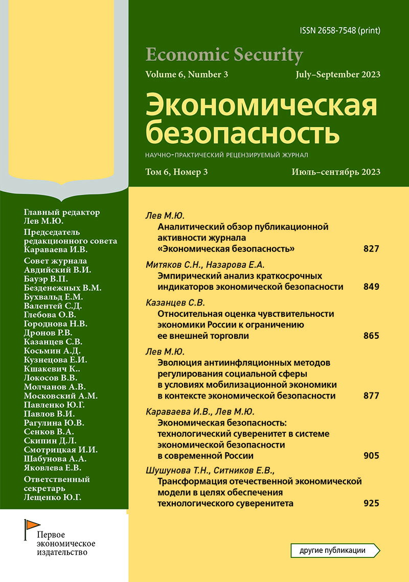 Аналитический обзор публикационной активности журнала «Экономическая безопасность»