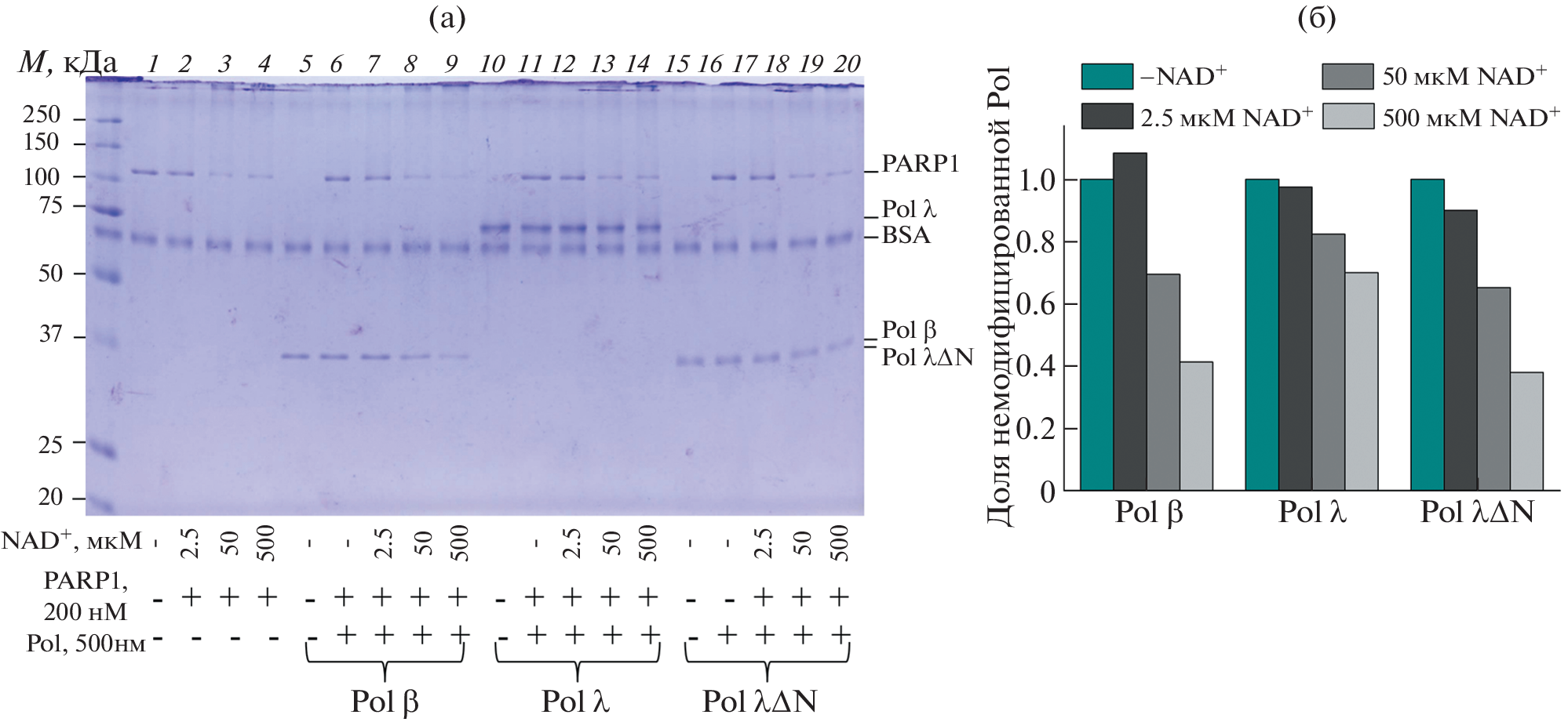 - Sukhanova M., Khodyreva S., Lavrik O. Poly(ADP-ribose) polymerase 1 regulates activity of DNA polymerase beta in long patch base excision repair. // Mutat Res. 2010. V. 685. № 1–2. P. 80–9.