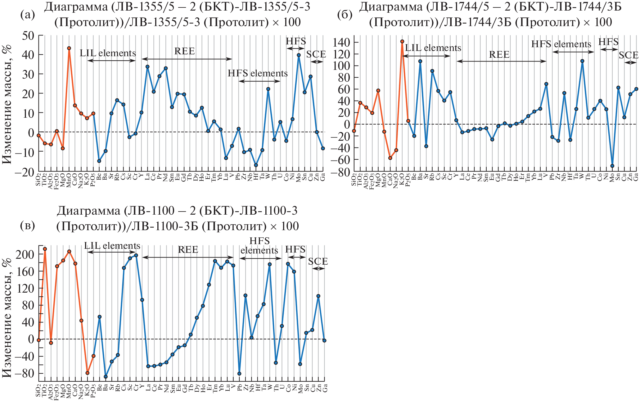Based on geochemical analyses of tectonic pseudotachylytes and their host rocks the features of redistribution of major, rare and rare-earth elements during seismogenic frictional melting of arkose-type metaterrigenous rocks from different-temperature zones of regional metamorphism) of Northern Ladoga region are considered. Multidirectional trends in variations of the major elements oxides contents in the triad protolith-blastocataclasite-pseudotachylyte were revealed, but a unidirectional increase of the frictional melt basicity in comparison with the protolith was established. Geochemical evidence of partial selective melting of source rocks is considered. Peculiarities of rare and rare-earth elements fractionation during transition to the melt of protolithic material, as well as during its subsequent partial crystallization are shown. The appearance of positive europium anomaly in the melt matrix of all three sampling points is noted. By changes of these elements’ concentrations in zones of pseudotachylyte substrate generation and in areas of its injection their differential mobility during frictional melting in a zone of dynamic movement is estimated.