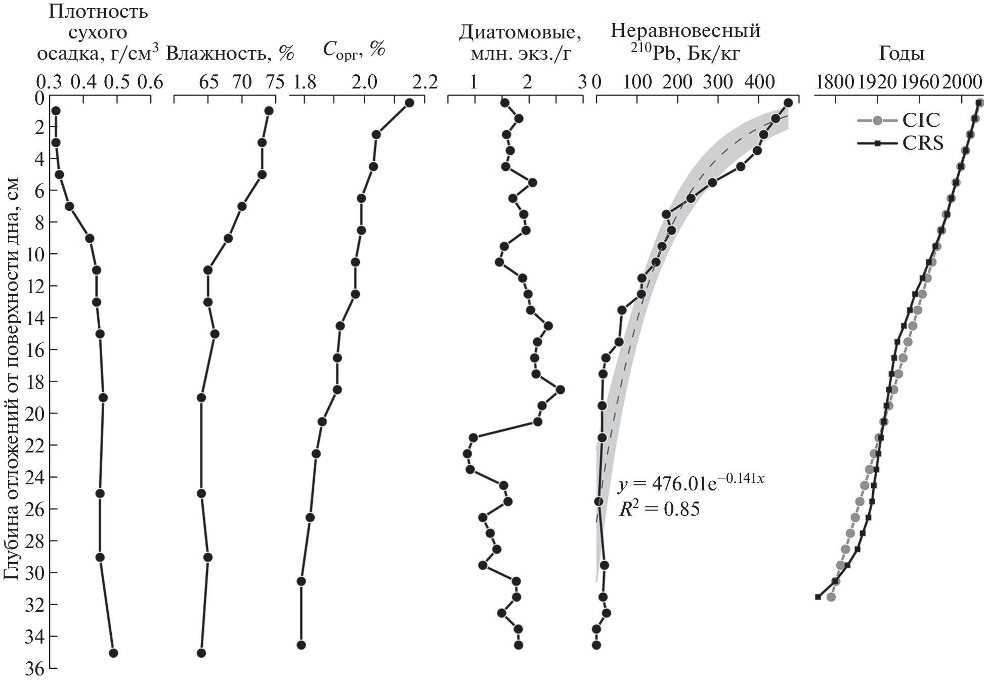 - Appleby P.G., Oldfield F. The calculation of lead-210 dates assuming a constant rate of supply of unsupported 210Pb to the sediment // CATENA. 1978. V. 5. № 1. P. 1–8.