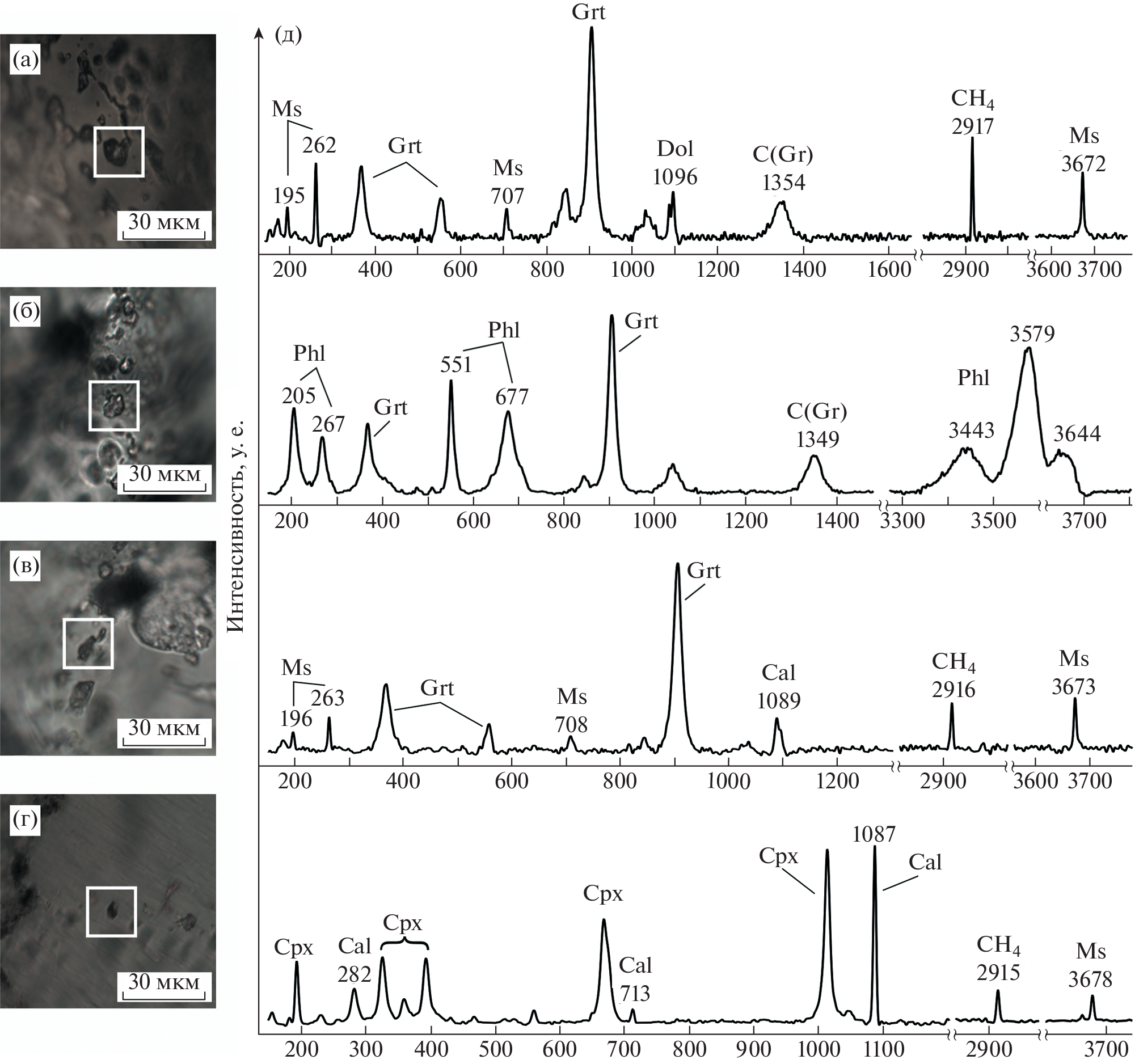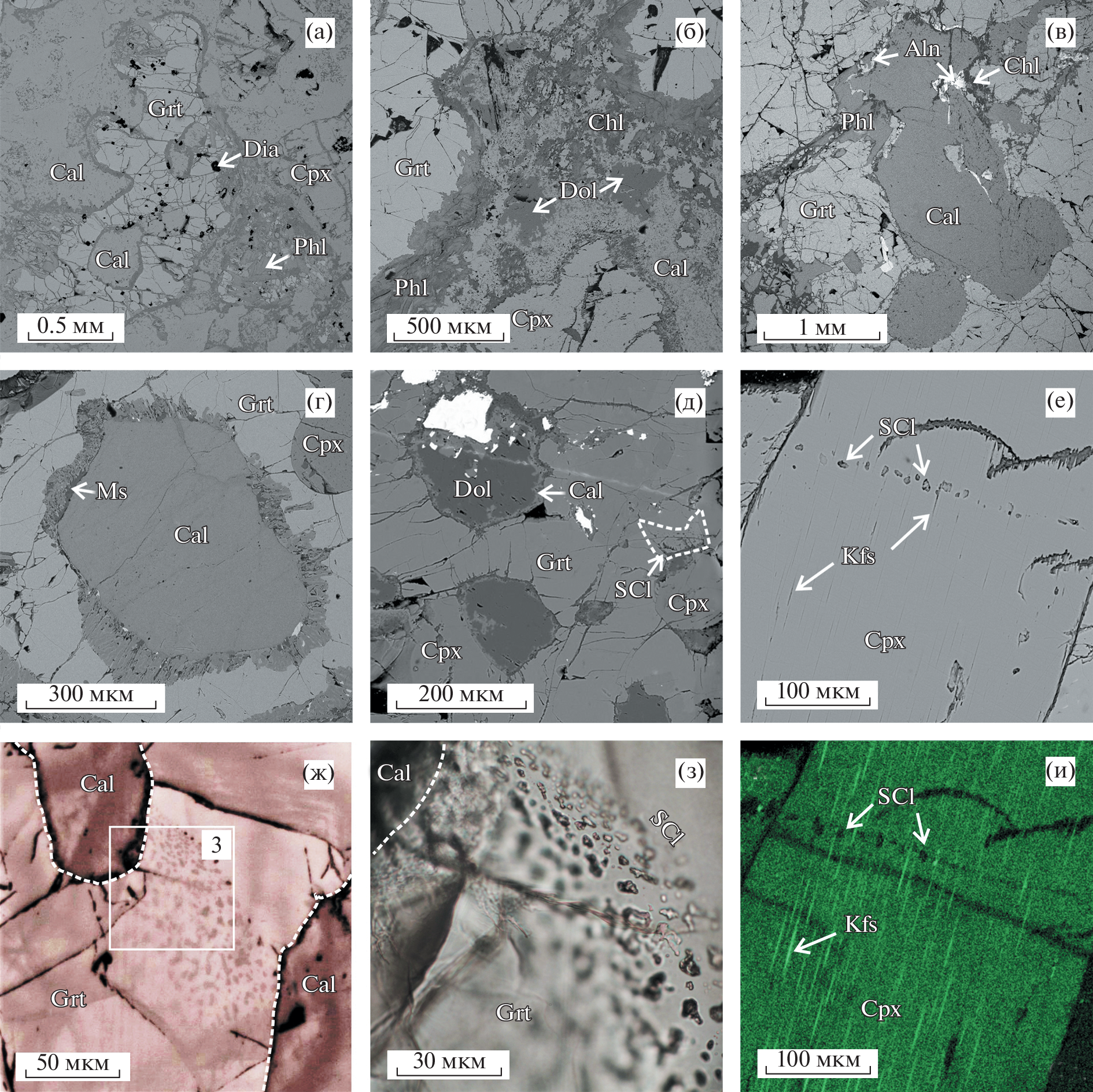 - Mikhno A.O., Schmidt U., Korsakov A.V. Origin of K-cymrite and kokchetavite in the polyphase mineral inclusions from Kokchetav UHP calc-silicate rocks: evidence from confocal Raman imaging // European Journal of Mineralogy. 2013. V. 25. P. 807–816.