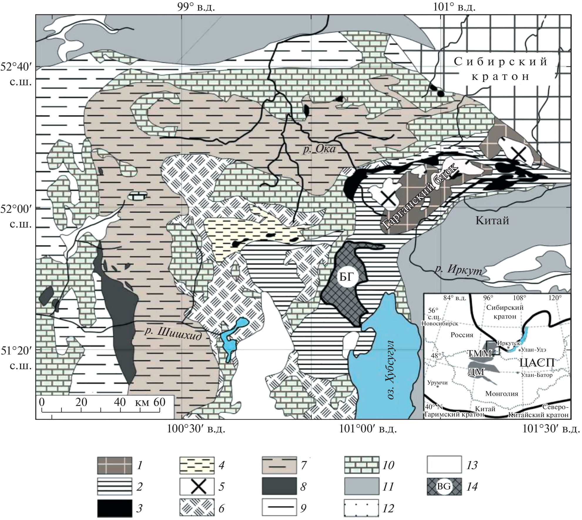 - Bold U., Isozaki Y., Aoki S., Sakata S., Ishikawa A., Sawaki Y., Sawada H. Precambrian basement, provenance implication, and tectonic evolution of the Gargan block of the Tuva-Mongolia terranes, Central Asian Orogenic Belt // Gondwana Research. 2019. V. 75. P. 172–183.